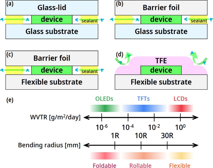 圖2:OLED封裝類型及不同柔性需求對應(yīng)的水汽透過率