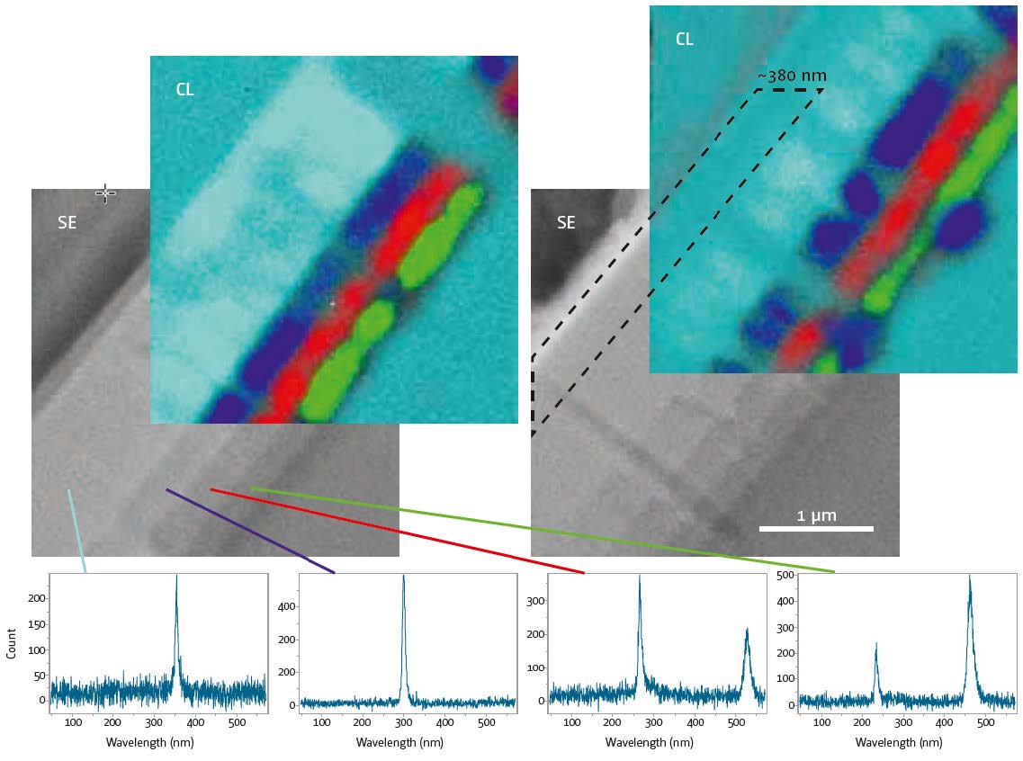 由于其與大批量硅晶圓廠的兼容性,GaN-on-Si技術(shù)平臺可以大規(guī)模生產(chǎn)體積大且性能優(yōu)越的硅晶圓而減小成本,使這項技術(shù)真正改變了游戲規(guī)則并用于汽車領(lǐng)域。陰極發(fā)光是其中半導(dǎo)體物理中使用的關(guān)鍵技術(shù)。它能夠提供III-V薄膜材料的空間表征分辨率從而開辟出廣闊的研究領(lǐng)域。