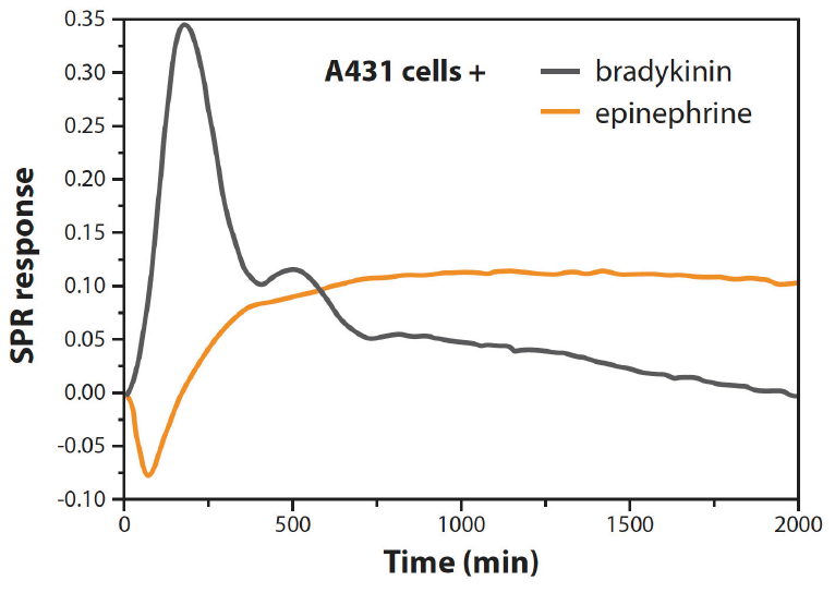 由于其在生理過程中的核心作用,gpcr作為新藥物化合物的靶點被廣泛研究。結(jié)合全SPR曲線峰的動態(tài)角度(PAP)和強度(PMI)變化,MP-SPR用于將活細胞中活化的gpcr分離成亞型特異性信號通路,而不使用拮抗劑或其他反應(yīng)調(diào)節(jié)劑。
