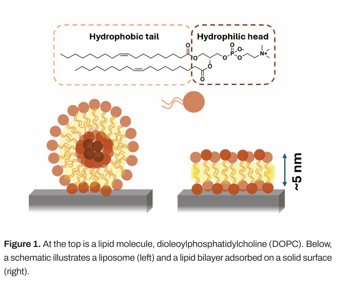 石英晶體微天平耗散測(cè)量(QCMD)作為一種研究工具在材料科學(xué)、生物物理學(xué)、電化學(xué)和免疫傳感等廣泛領(lǐng)域得到了廣泛的應(yīng)用。其廣泛應(yīng)用背后的一個(gè)關(guān)鍵因素是它能夠以無標(biāo)簽和易于使用的方式在固/液界面上提供對(duì)分子組織(特別是拓?fù)浜蛶缀危┑囊娊狻V档米⒁獾氖?,QCMD已被證明可以區(qū)分各種表面固定的脂質(zhì)結(jié)構(gòu),如吸附脂質(zhì)體和支持脂質(zhì)雙層(slb;圖1).這種能力允許在二氧化硅涂層的QCMD傳感器上實(shí)時(shí)監(jiān)測(cè)脂質(zhì)體的SLB形成。進(jìn)一步的研究表明,如何結(jié)合不同泛音的頻率和耗散測(cè)量來研究吸附脂質(zhì)體的變形。