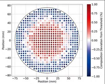 圖3.S?ntis300平臺(tái)能夠生成氮化鎵HEMT結(jié)構(gòu)中埋入式鋁鎵氮層的鋁成分的晶圓圖(模擬數(shù)據(jù))。