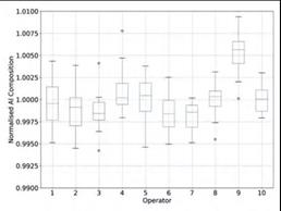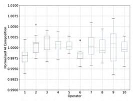 圖4.嵌套量具可重復(fù)性和可靠性研究的代表性結(jié)果,用于確定以下條件的鋁鎵氮層中的鋁成分:(a )完整的常關(guān)氮化鎵HEMT結(jié)構(gòu)(埋層);(b)去除了p型GaN蓋層的等效HEMT結(jié)構(gòu)(表層)。