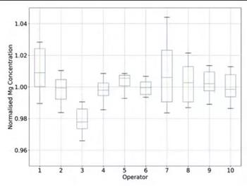 我們采用一種創(chuàng)新的圖像重建方法解決了這一問題,該方法利用了蒙特卡洛和數(shù)值模擬的結(jié)果以及特定材料知識(shí)和假設(shè)。在研究了不同圖像上的數(shù)百次迭代之后,我們確定了重建的可再現(xiàn)性,以 3σ 的方式評(píng)估為 ±1.05%(見圖 1)。此外,與基準(zhǔn)特征檢測(cè)解決方案相比,我們的技術(shù)可解決多達(dá) 40%的缺陷。
