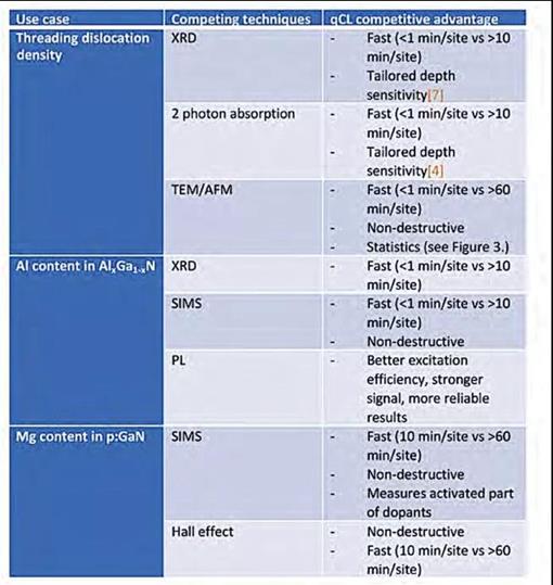 表1 Attolight解決方案分析氮化鎵HEMT外延片的優(yōu)勢(shì)。