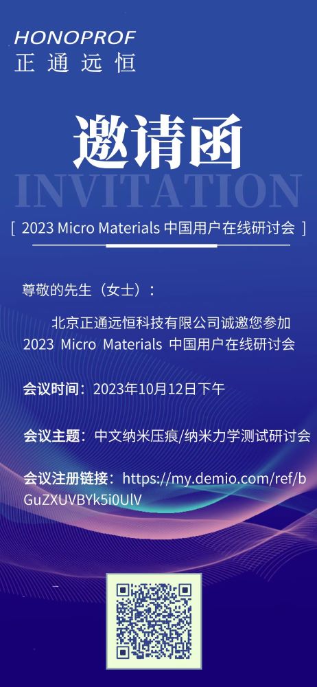 為了讓Micro Materials中國用戶了解納米壓痕及納米力學(xué)測試技術(shù)的最新進展,Micro Materials聯(lián)合北京正通遠恒于2023年10月12日為客戶舉辦在線研討會。 我們邀請您聆聽該領(lǐng)域一些知識淵博的專家的演講,幫助您開展研究并充分利用MML儀器。 Micro Materials 將會在本次研討會中向各位用戶老師介紹我們最新的隨機沖擊技術(shù)以及相關(guān)的應(yīng)用。期待您的參會!