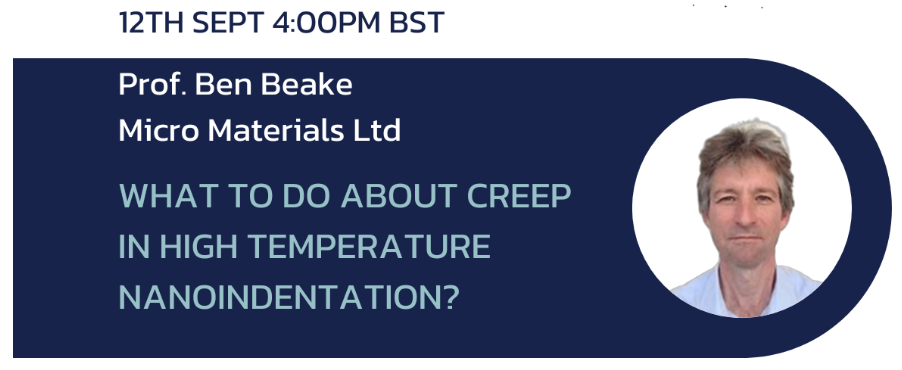 本次免費(fèi)在線研討會(huì)將于9月12日(周四)下午4點(diǎn)(英國夏令時(shí))開始。在研討會(huì)上,Ben Beake教授將介紹在最高溫度下納米壓痕測試中更高的蠕變所帶來的挑戰(zhàn),并展示如何使用改進(jìn)的實(shí)驗(yàn)設(shè)計(jì)和分析來產(chǎn)生可靠的數(shù)據(jù)——即使在超過1000攝氏度的溫度下。如果您還想了解有關(guān)納米力學(xué)行業(yè)領(lǐng)先的高溫納米壓痕能力的信息,溫度高達(dá)或超過1000攝氏度,請(qǐng)報(bào)名參會(huì)。報(bào)名地址:https://my.demio.com/ref/K1JYKnV8HAm1aAjZ