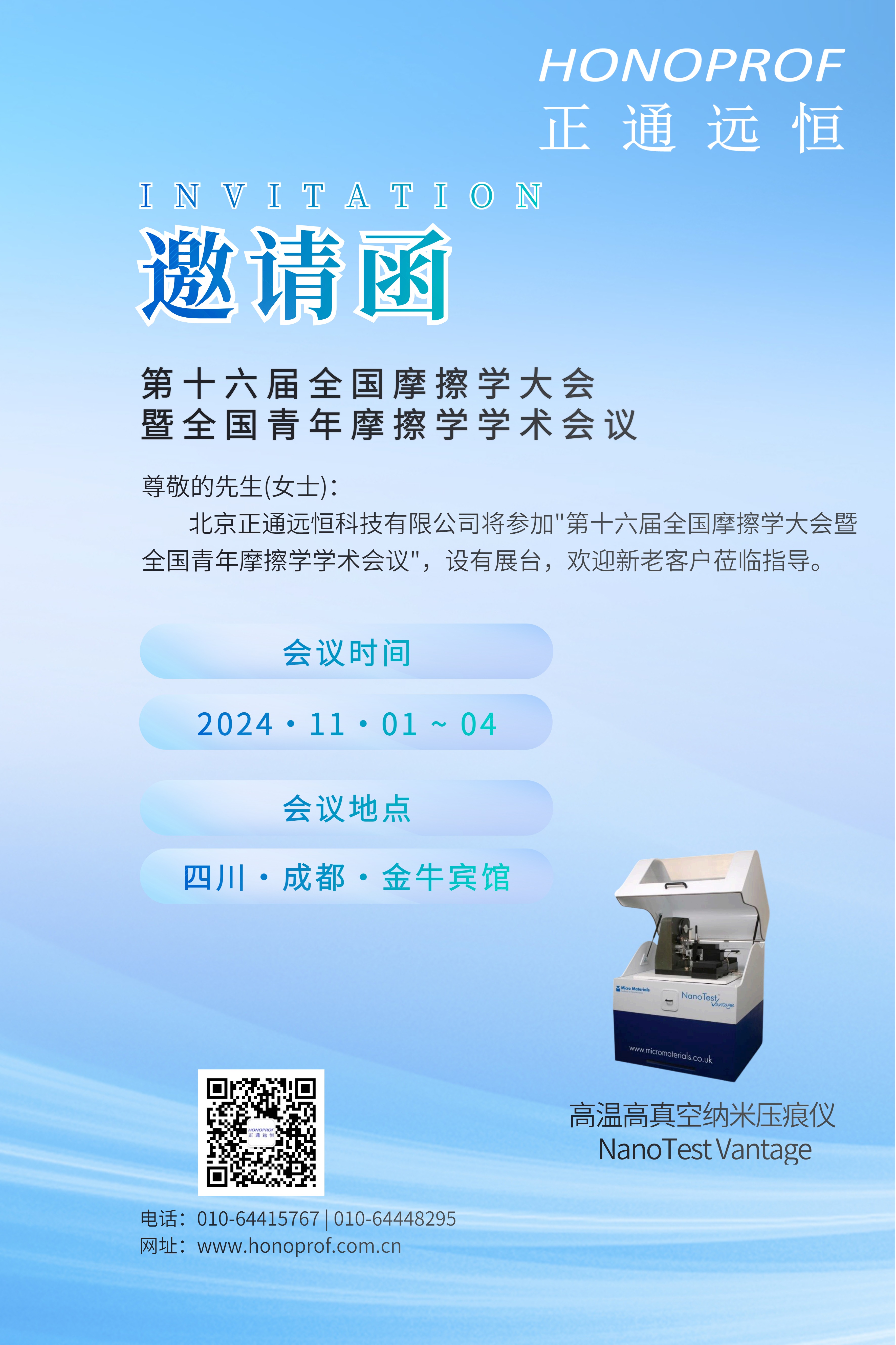 北京正通遠(yuǎn)恒科技有限公司將于2024年11月1日-4日參加在四川省成都市金牛區(qū)金泉路2號(金牛賓館)舉辦的"第十六屆全國摩擦學(xué)大會暨全國青年摩擦學(xué)學(xué)術(shù)會議",本次會議是在中國西部召開的又一次中國摩擦學(xué)界的盛會,是中國機(jī)械工程學(xué)會摩擦學(xué)分會響應(yīng)國家“新西部大開發(fā)”和“成渝地區(qū)雙城經(jīng)濟(jì)圈建設(shè)”的具體實(shí)踐,是加快發(fā)展“新質(zhì)生產(chǎn)力”的新作為。會議的召開將會加強(qiáng)全國摩擦學(xué)者的深入交流,進(jìn)一步推動摩擦學(xué)創(chuàng)新成果轉(zhuǎn)換,為中國制造新質(zhì)生產(chǎn)力發(fā)展添力賦能、提供堅(jiān)實(shí)的科技支撐。北京正通遠(yuǎn)恒出席此次盛會并設(shè)有展臺,歡迎新老客戶蒞臨指導(dǎo)!